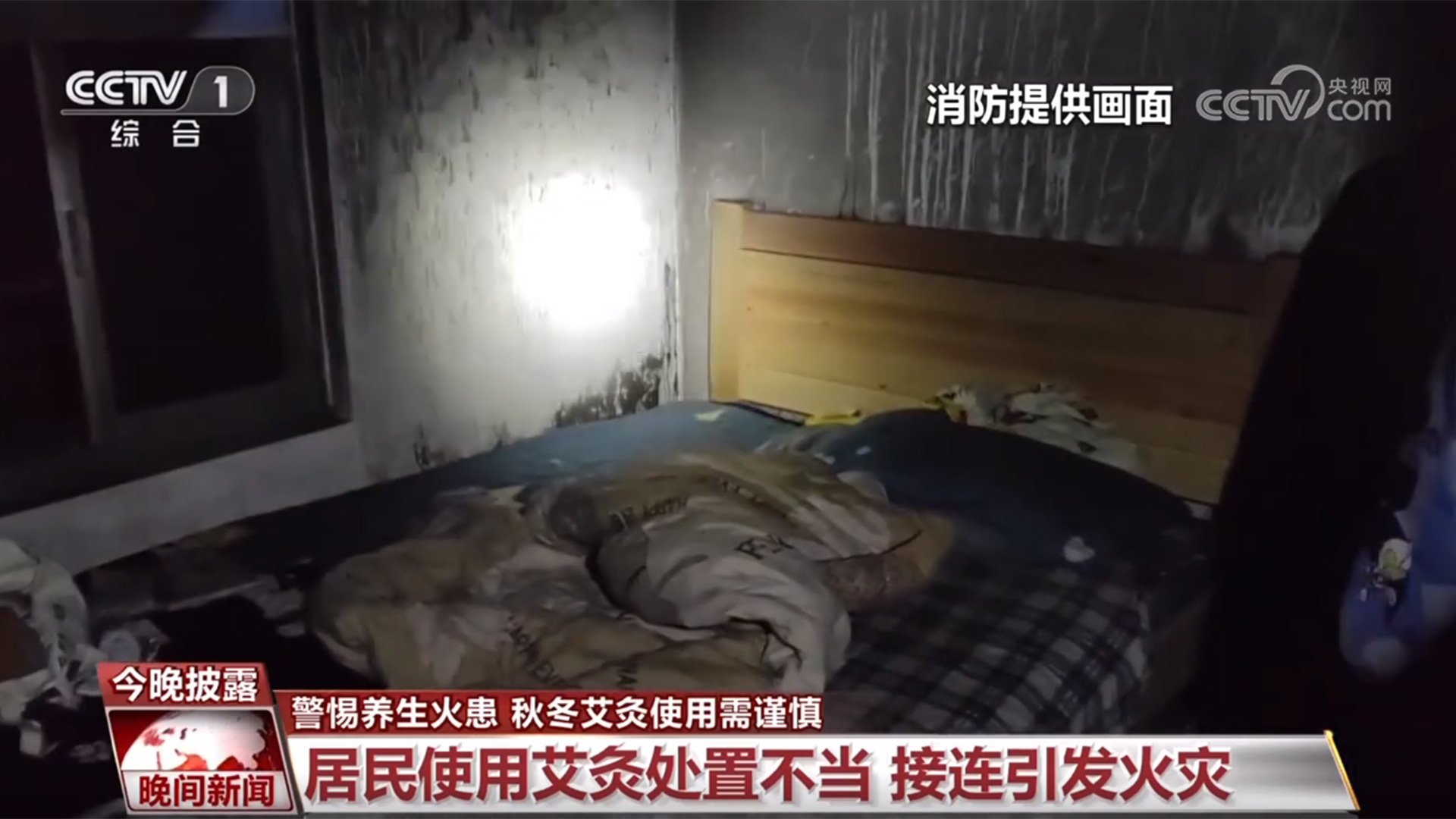 事后,消防员联系上该户居民。据她回忆,当天下午,她在卧室使用完艾灸后,将自以为熄灭了的残余艾灸柱,放在床上后外出,没想到由此引发事故。