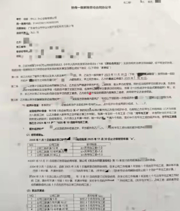 类似案例更显讽刺。某国产车企去年裁员时,用“自愿离职”规避补偿;某电子厂甚至威胁“不签字一分没有”。而佳能珠海的离职员工曾透露:“人事挨个打电话道歉,补偿金秒到账。”