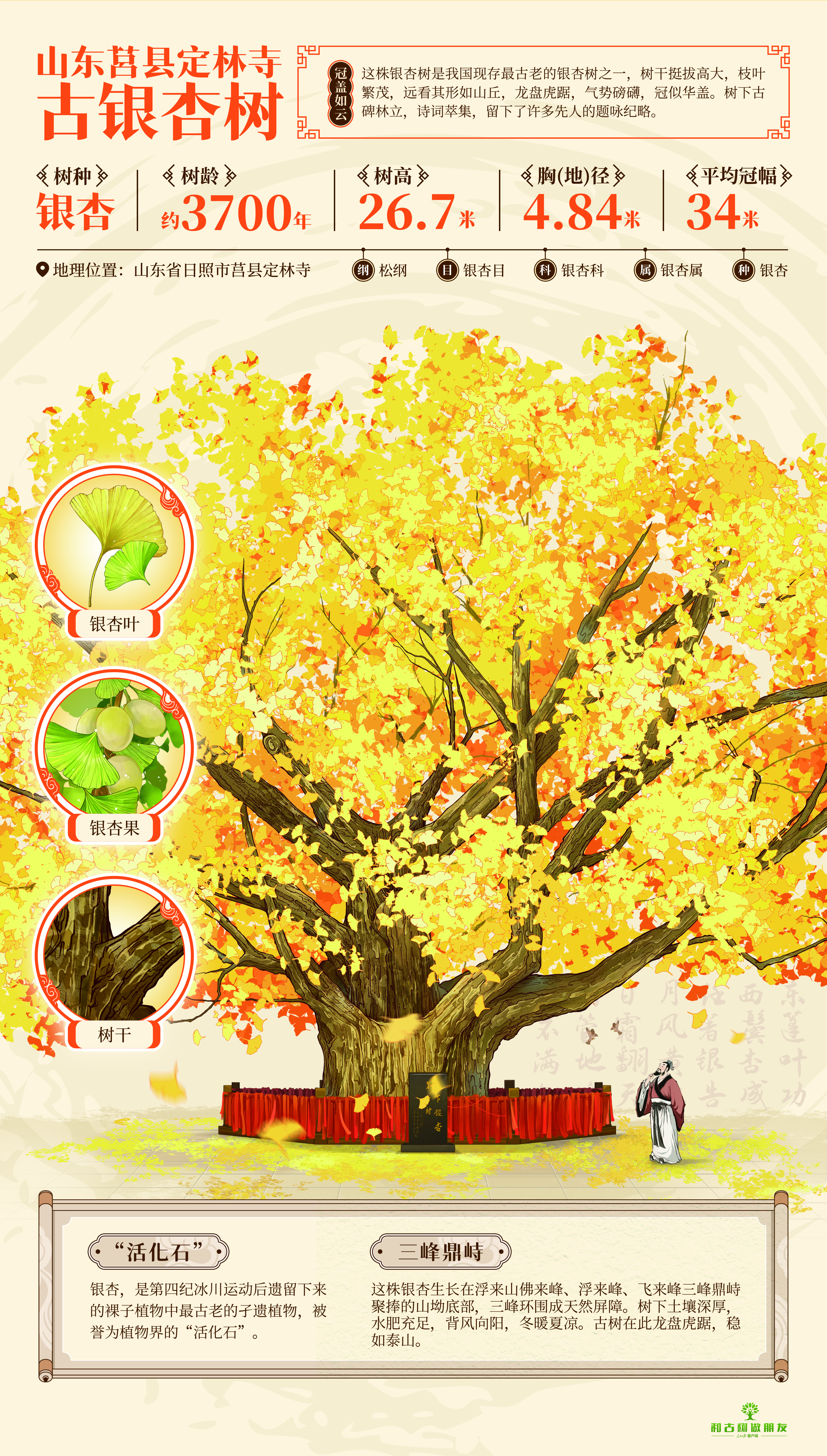 今年8月,在中国邮政发行的《古树名木》特种邮票上,一株山东日照市莒县的古银杏树格外引人注目。
